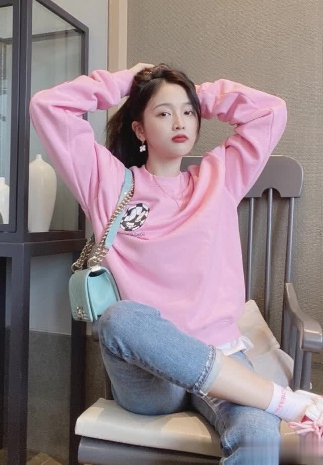 粉色卫衣虽具少女风格,却对肤色和气质有所要求,一般人或许难以驾驭此颜色,然而吴宣仪气质偏甜美,故而能穿出独属于自己的美,年轻好看且极具吸引力。卫衣既可以单独穿着,也能够在里面搭配一件T恤或者衬衫,既能起到保暖作用,又能增添几分趣味。